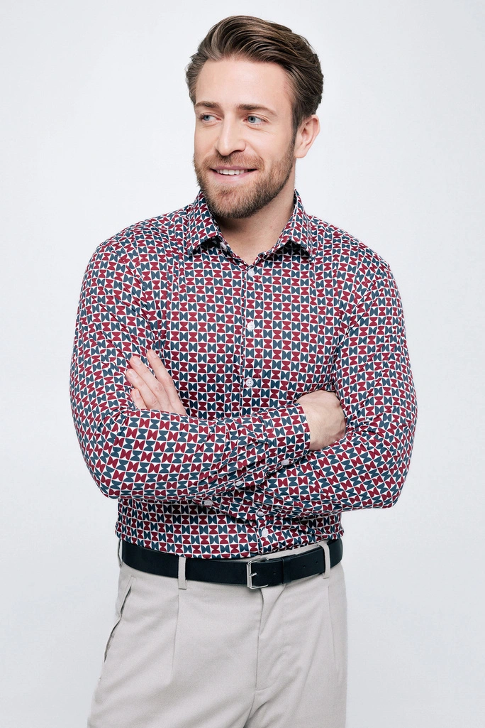 GEO NORDIC BURGUNDY to koszula, która łączy nowoczesny design z klasyczną elegancją, tworząc stylowy element każdej szafy.